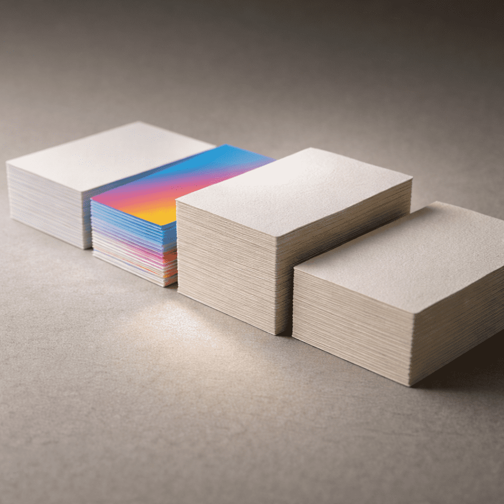 Не всегда нужна дизайнерская фактура или сверхплотный картон. Для листовок отлично подходит бумага 130 г/м², для буклетов — 150–170 г/м², для визиток — 250–300 г/м².